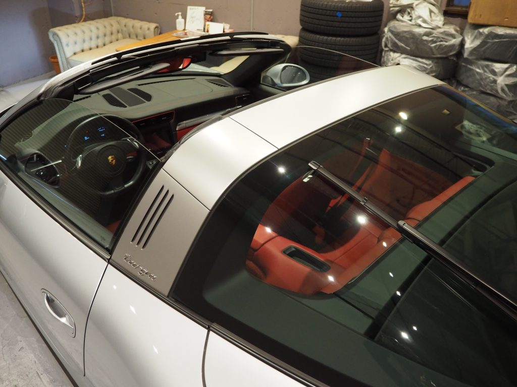 またカブリオレでオープンにすると街では少し恥ずかしいという方も多いですがタルガですと後部が開いていない分プライバシーも守られながらオープントップをお楽しみ頂けます!